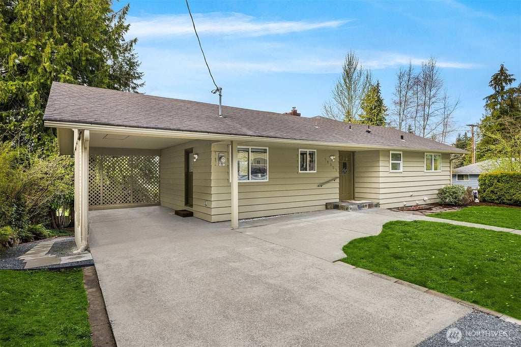 Sunny, spacious rambler on a large peaceful lot, offering a fully functional multi-generational suite or rentable ADU, just an easy walk to the new light rail station and to all the fun and amenities in Shoreline’s North City. The main floor features a large, updated kitchen with breakfast bar that opens to spacious dining & living areas, with real oak floors, cozy gas fireplace, and expansive windows that frame the huge, peaceful, private backyard oasis – a perfect place to garden, relax & entertain. Three generous bedrooms offer ample closet space. Downstairs, the separate living space is fully independent—perfect for mutli-gen living or rental income. Easy access to transit, great schools, parks, & shopping. The good life starts here!