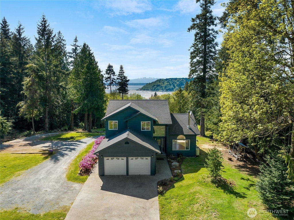 Perched on over 2 acres with sweeping views of the shipping lanes and Olympic Mountains, this sunlit two-story home is a perfect blend of comfort, privacy, and natural beauty. Spacious, light-filled interiors invite you to unwind by either of the two cozy fireplaces or step out onto the private primary suite deck to bask in the coastal sunshine. The chef’s kitchen features granite countertops, a gas range, solid maple cabinetry, and opens to an expansive covered deck—ideal for year-round entertaining. Impeccably landscaped grounds include a fully deer-fenced garden, thriving fruit trees, and plenty of space to explore and relax. Watch eagles soar overhead as you soak in the peaceful rhythm of Westside Whidbey life—you’ll feel a world away.