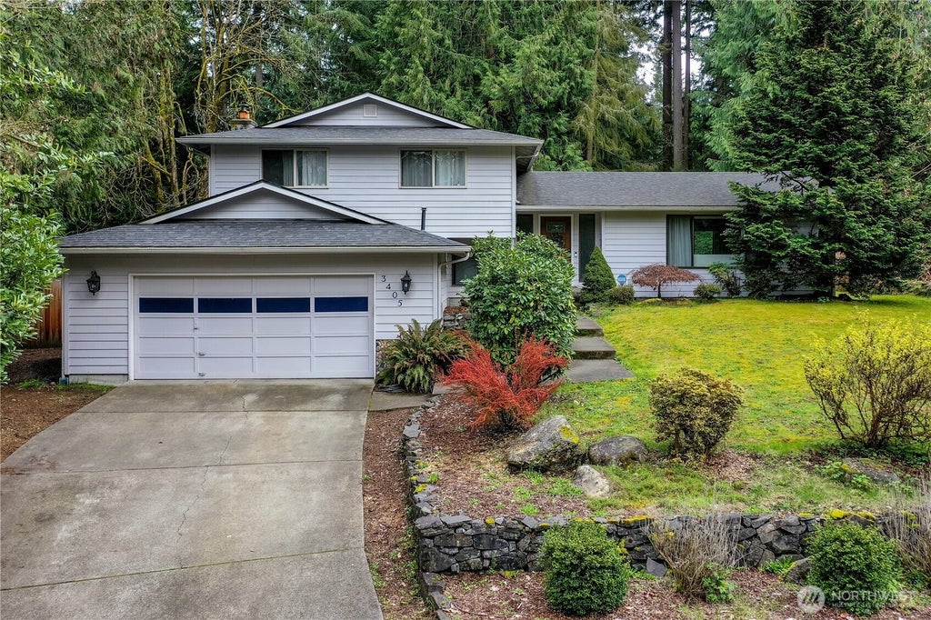 Welcome Home in coveted Manorwood Community. Cozy entryway opens to spacious Living Room w/vaulted ceilings. Well appointed kitchen with gas stove, granite tile countertops, tile backsplash & beautiful view into lush backyard. Newer carpet & eng. hardwood. Tile Floor in bathrooms and laundry. Lower level features family room with wood-burning fireplace, bedroom & utility room. All appliances stay with home. New furnace & water heater installed in 2019. New roof and exterior paint in 2021; cedar siding. Peaceful backyard with deck & designated firepit area. Fully-fenced yard, new fence in 2022. Neighborhood park with playground. HOA member-only amenities; Community Clubhouse, tennis & basketball courts, RV/Boat Parking, & Pool.