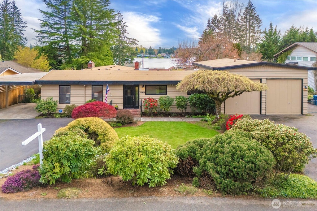 Panoramic Lake Meridian View Home! Enjoy spectacular lakeside community living, beach & boating fun & sunset views as you call this house home! This one-owner, custom-built house on .35 fully-fenced acres includes 3 beds, 1.75 baths & 1550sf on the main level with all of the features of single-level living, a 460sf finished lower level with direct backyard access, PLUS storage galore in the 1090sf dry, high-ceiling unfinished basement. Abundant parking includes covered carport, a large 2-car garage with RV height doors & workshop, PLUS a gated side-yard for your RV or Boat. Purchase includes shared ownership of the Off Shore Beach Club waterfront park. New electrical panel & fresh paint inside & out in 2025. Pre-inspection report available.