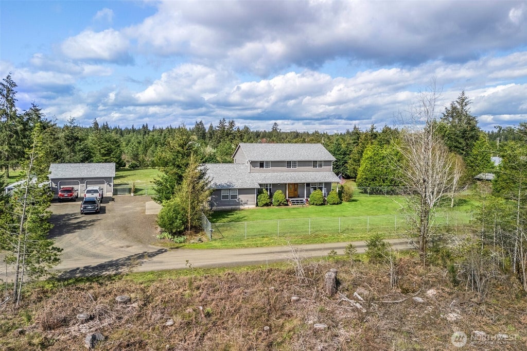 Immaculate custom built 4 bedroom home with 2 covered porches. Real hardwood floors and quality wood trim. Large kitchen with breakfast bar with easy access to the back deck for your BBqing Pleasure. Attached 2 car garage as well as another 2 car garage/shop and a 10x20 carport. An additional 10x20 storage shed. Fully fenced park like 1.25 acres speckled with 100+ fir, pine, cedar and birch trees. All 4 bedrooms on the 2nd floor including a spacious primary suite with a full bath. Efficient heating and air conditioning with a newer heat pump. Roof is 4 years old. Quick, easy access to schools, hwy 101, shopping and the hospital.