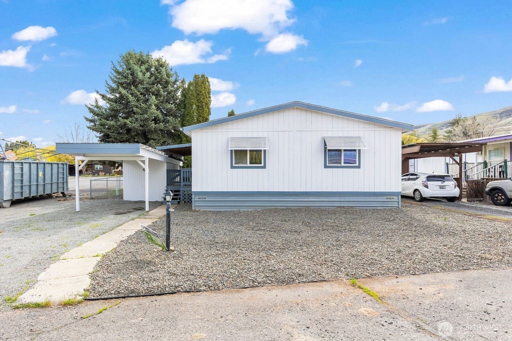 This spacious and updated 1992 double wide manufactured home features 2 bedrooms, 2 bathrooms, and 1,080 square feet of comfortable living space in Country Squire Park in Yakima, Washington. Enjoy year-round comfort with central heat and A/C. The kitchen is equipped with brand new stainless steel appliances including a fridge, stove, and dishwasher. The home also includes washer and dryer hook-ups for added convenience. The layout offers a private en suite bathroom off the primary bedroom, along with a separate guest bath. A carport provides covered parking, and a storage shed is conveniently attached for additional space. Lot rent is $575/month and includes water, sewer, and garbage.