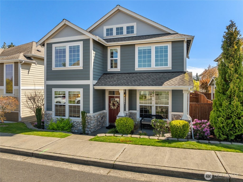 The Villages @ South Hill welcome you to 2430!3 bedrooms,2.5 bathrooms,& a versatile loft space—perfect for a home office,play area,or extra lounge.Each bedroom offers the luxury of a walk-in closet,while the primary suite impresses with cathedral ceilings & spa-like 5-piece bath,complete with a garden tub.The kitchen is a chef’s delight with granite tile countertops,a classic tile backsplash,a large breakfast bar,alder wood cabinets with elegant glass panels,& stainless steel appliances.Hardwood flooring runs throughout the main level,adding warmth & character.Large covered patio for year-round outdoor enjoyment.This home combines comfort & thoughtful design in every detail.Walking distance to parks,(dedicated dog park),bb court & schools.