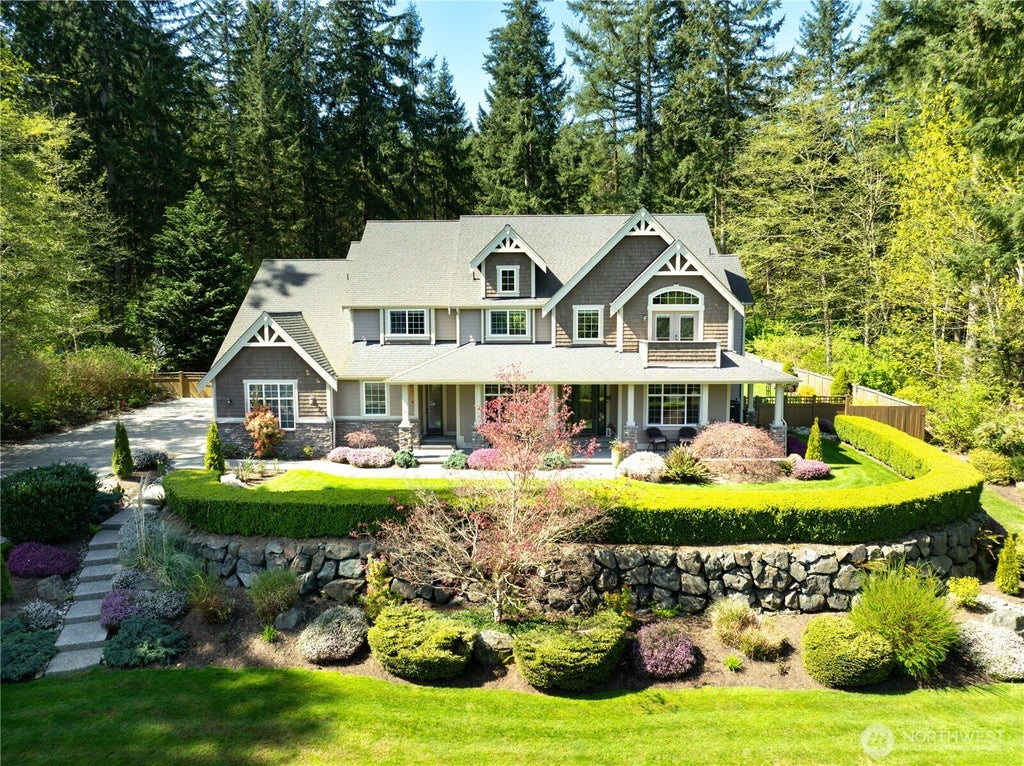Amazing Custom Craftsman with Exceptional Floor Plan & Quality Finishes Throughout. Unique & Coveted Aspen Community of 1-Acre Lots, parks & sport court. Formal dining rm w/coffered ceiling, cozy den w/fireplace & built-in shelves. 2 story great room w/floor to ceiling stacked stone frplc. Chef's kitchen w/double ovens, island, breakfast nook, pantry & Butler's pantry. Gorgeous primary suite w/vaulted ceiling, deck & 5-piece bath w/jetted tub. 3 large guest bedrooms, bonus rm w/closet, large laundry rm w/sink & loft area. Mud rm w sink. 1101 sq ft Four Car Garage! Parklike yard w/entertainment size patio, walkways, relaxing water feature, fire pit & fenced yard. Hardwood floors, wainscoting & central vac. Mt views. Easy I-5 access