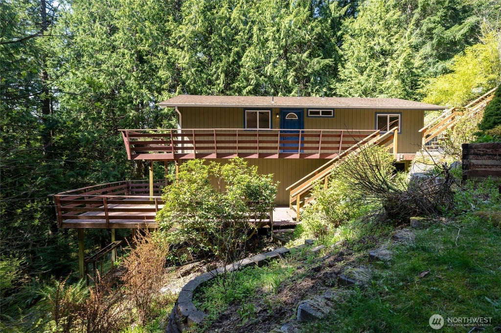 A rare find—this 4-bed, 2.5-bath, spacious Sudden Valley home is perfect for multigenerational living! Featuring 2 primary suites, this flexible layout offers comfort and privacy for everyone. Recent updates to both the upstairs and second-floor bathrooms add modern style, while nearly 2,000 sqft of living space provides room to spread out. Enjoy the outdoors from your expansive multi-level deck, great for entertaining or soaking in the scenic forest views. The sunny triple lot includes a level open yard for gardening or play, plus a shed for extra storage. Flat parking area easily fits 4+ vehicles. Enjoy access to all the amenities Sudden Valley has to offer: lake access, marina, golf course, community pool, gym, parks, trails, and more!