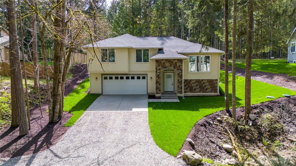 Beautiful 1,329 sq. ft., 3-Bedrooms, 2-Bathrooms Tri level with basement located in the highly sought-after, tranquil community of Clearwood at 22221 Bluewater Drive SE. The primary bedroom features an en-suite bathroom and a walk-in closet. The property offers an open concept layout, connecting the kitchen seamlessly to the dining room and living room. The main floor includes a laundry room and an attached two car garage. Additionally, a basement provides ample room for various uses. Walking destance to Clearwood lakes, beaches, picnic areas, miles of walking trails, swimming pool, and sport courts all near JBLM and the city of Yelm.