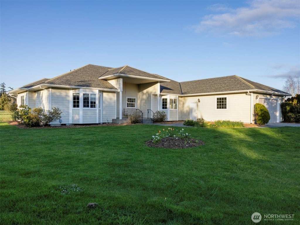 Stunning custom home on 1 acre in Sequim's sought-after Blue Hole. Enjoy panoramic mountain views, vaulted ceilings, large rooms and graceful arched openings that add interest to this smart split floor plan. Functional, elegant, and great for entertaining. Enjoy a propane fireplace on chilly days, a formal dining room with marble floors, plus a cozy eat-in kitchen area with bay window. Spacious primary suite features dual walk-in closets and a spa-like bath with dual sinks, jetted tub and separate shower. South-facing deck offers year-round outdoor living, plus a greenhouse in the manicured yard for gardening. Large 3 car garage and premium water filtration system. Loads of storage throughout!