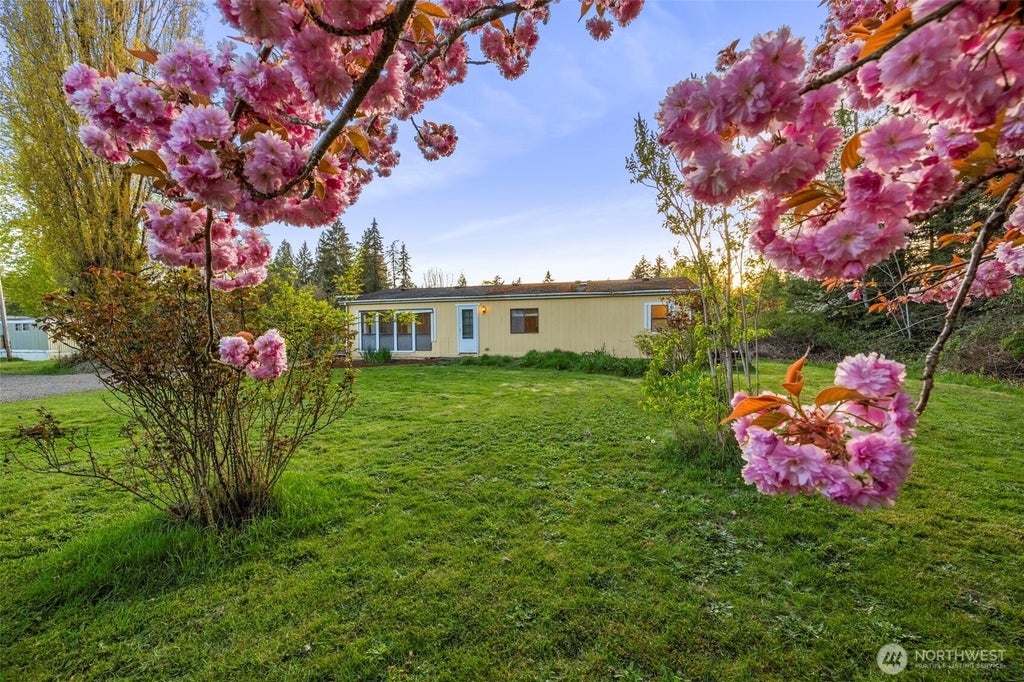 Welcome to your next exciting opportunity! This 2-bedroom home is nestled on a lush double lot surrounded by blooming trees, weeping willows & endless potential. Step in to an oversized living room that opens seamlessly to the kitchen & dining area. The kitchen offers ample cabinetry, breakfast bar & convenient mudroom, while the covered deck & hot tub invite you to unwind + soak in the peaceful greenery. Spacious primary suite includes double closets & an attached ensuite, w/additional bedroom & full bth just down the hall. Detached 2-car garage/shop adds room for hobbies, storage, or future projects. Whether you're ready to roll up your sleeves or dreaming up your next investment, this property is full of possibility! *MULTIPLE OFFERS*