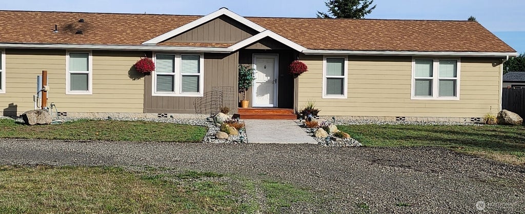 Welcome to this beautiful quality home on a level acre+ with mountain view & breathing room, but, still close to the amenities Sequim has to offer. This home has a 5 star energy rating & is a "top of the line" Marlette. The welcoming living room is light & bright with a cozy pellet stove for that added snuggly warmth. There are 3 beautiful spacious bedrooms with generous closets & 2.5 baths. French doors open into a private office. The oversized & efficient kitchen beckons you to get your "inner chef" on & flows into an inviting dining area. The laundry area is cheerful & has access to the outdoors. The acreage allows options to expand with gardens, a shop and possibly an ADU or guest quarters. Come & feel this home and what it offers.