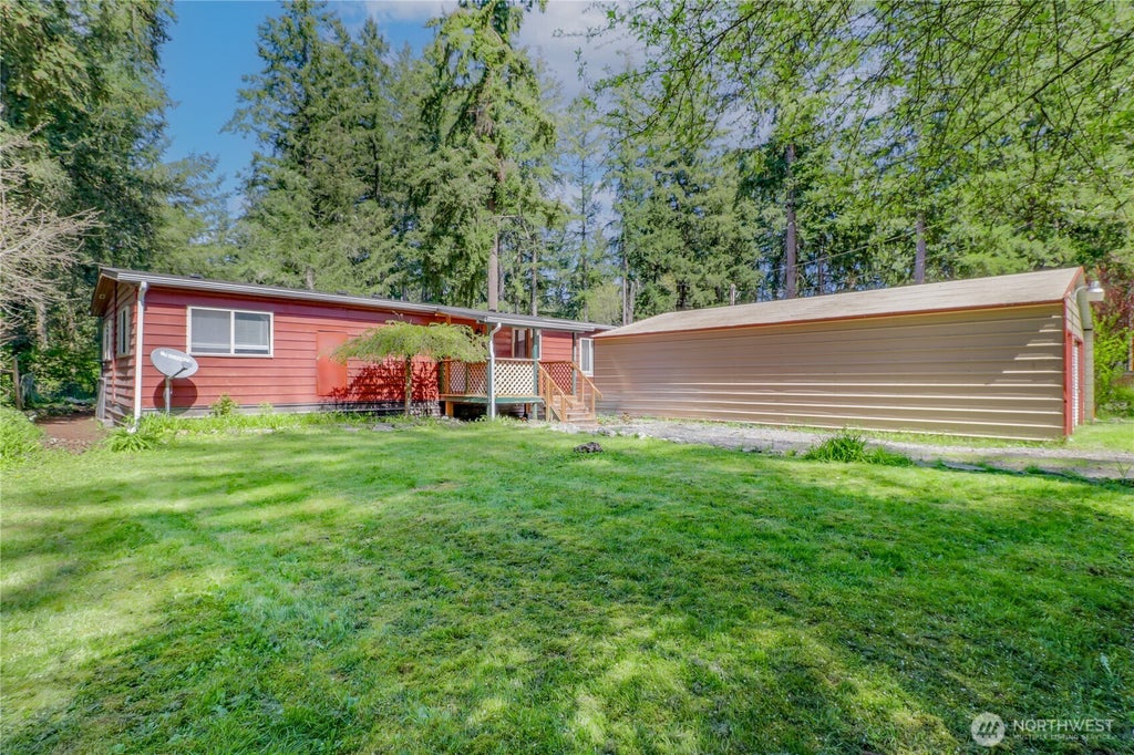Priced to sell! Wonderful home situated on corner lot in the Nisqually Pines. 3 bedrooms & 2 bathrooms. Open concept living room & family room + dining room. Kitchen, guest bathroom & primary bathroom have all been updated to include newer cabinets & quartz counter tops. Updated floors. All appliances stay. New roof & gutters. Giant covered back patio & covered front porch. Huge, detached pole barn w/plenty of space for storage, parking & more. Nisqually Pines offers pool, parks, Nisqually River access & more. Easy access to JBLM, freeway & more. Home has been moved twice, not eligible for FHA financing. Buyer & buyer's agent to verify all information to own satisfaction.