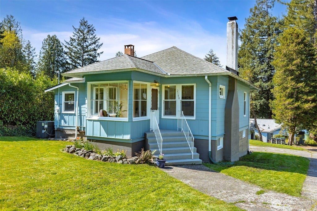 Welcome home to your charming 1912 Phinney Bay cottage w/ partial water views. Stunning original hardwood wood floors, built-in bookcase, and other period features make this home truly special. Open living space flows from kitchen to dining area and spacious living room boasting tall ceilings and fireplace insert. Off the living room, find your all-season sun porch, the perfect place to cozy up with a book or cup of coffee. Bring your imagination to the walk-out unfinished daylight basement, which could be transformed into additional living space, workshop, craft room, and more. Newer roof, updated electrical, plumbing, and heat pump give you peace of mind.