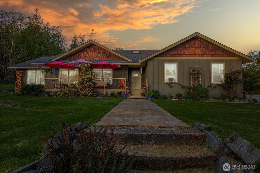 Imagine breathtaking sunsets from the front porch or on one of your benches in this incredible park like 4 acres. River birches & soft grass allow you to explore an area the local deer call home. The home boasts two ensuite primary bedrooms with a third bedroom & sitting room/dressing room/office. You'll find three bathrooms, skylights & vaulted ceilings. Quality craftmanship and updates will leave you wanting to do nothing but enjoy your small estate in coveted Bow. The shop is 36x32 with 220 & can house 4 cars or a wide array of toys and projects, including a loft for additional storage. The greenhouse is already producing fruit trees and tastes of the season. RV parking & unofficial plans for an ADU complete this estate in Magic Skagit!