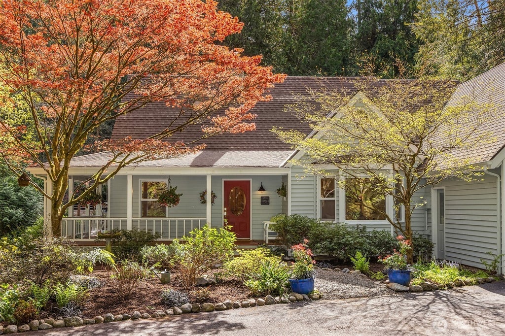 Improved Price! Charming cottage style home close to 90 acre Battle Point Park with sports fields, walking trails, play structures, and Pickle Ball courts. Conveniently located in the center of Bainbridge Island, close to all daily used amenities and schools. A tranquil 1.25 acres, this property includes a large deck for entertaining, beach access and private pond. Wide plank wood floors and open floor plan. Main floor primary bedroom, with 2 additional bedrooms on the upper level. Bonus space has private access on the second floor and would be a great home office or gym. Attached 2 car garage and additional RV or boat parking available. Store your kayak or paddleboard at the beach for easy launch