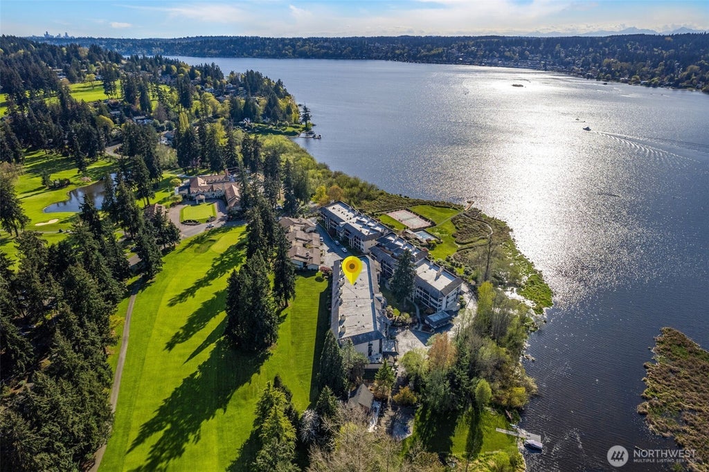 Refined lakeside living with serene fairway views. Beautifully renovated top-to-bottom, blending sophistication & comfort, featuring oak floors, quartz counters & striking herringbone marble fireplace. The open layout flows from a well-appointed kitchen & living areas to a covered, year-round lanai on the 9th hole—your private retreat. Enjoy a spacious primary suite w/ luxe ensuite bath & walk-in closet; plus a 2nd bed + full bath. Full laundry room, A/C, 2 secure garage parking spaces, 2 lanai storage closets plus 2 dedicated storage units. Strong HOA w/ no upcoming special assessments, elevator access & resort-style amenities: private dock, pool, hot tub, tennis court, optional golf/social club memberships. Top-rated Northshore schools.