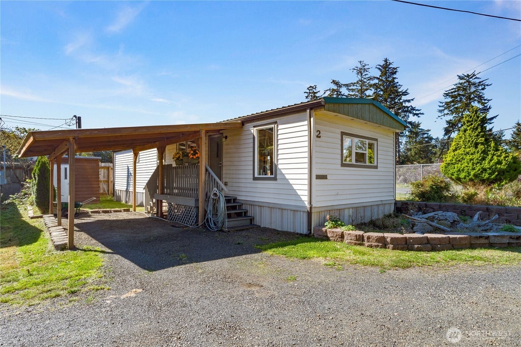 Welcome to this cozy single-level home on an easy-to-maintain corner lot. This 784 sq ft property offers 2 bedrooms and 1 bath, featuring open-concept living with beamed ceilings that create a warm and inviting atmosphere. The spacious kitchen provides plenty of cabinetry. Enjoy the convenience of a new heat pump, ensuring year-round comfort. The property includes a covered carport and a small shed for extra storage. Located centrally, this property has easy access to local amenities, this home is perfect for comfortable, low-maintenance living for 55yrs+