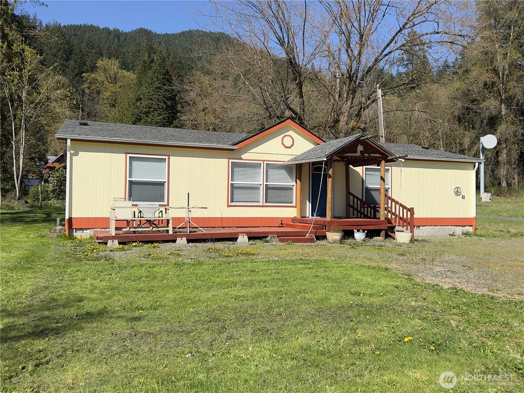 Unique opportunity! Beautiful location on the outskirts of Cougar gateway to our PNW wonderland. 3 bedrooms easy living. A primary suite with a soaking tub with updated tile work. Plenty of parking on this level lot. Two outbuildings and your own year around creek to listen to that feeds a waterfall across the road! Kitchen has s/s appliances that stay along with a washer and dryer that stays. Covered deck out front and a deck out back by the private creek. Garden area, yard, this property has it all! Most of the furniture can stay too. Just past Cougar Store. Views of Yale Lake just across the street!