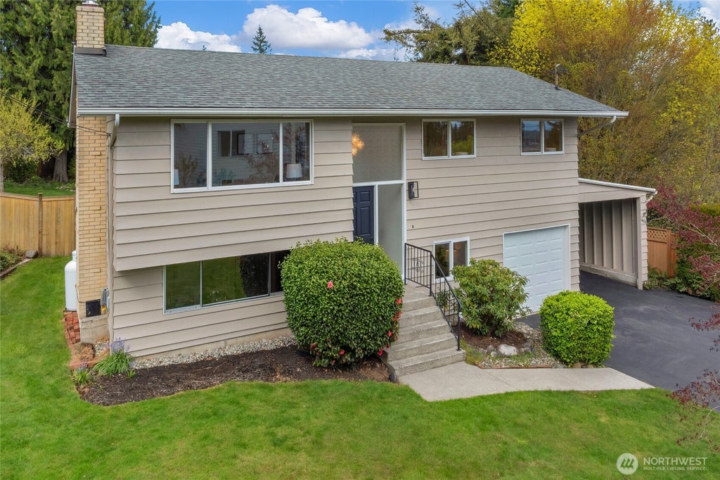 First Time on Market! Martha Lake home on HUGE lot. Originally built & recently updated by owner. Fresh paint, flooring, lighting, appliances, fences & trim! Bathrooms remodeled. Modern updates throughout! Enter to living room with propane insert. Updated kitchen w/ fresh countertops & appliances. 3 beds & full bath upstairs. Downstairs to 2nd living rm w/ beautiful wood ceilings. Wood burning stove. Bedroom, ¾ bath & util rm downstairs. Potential ADU conversion. Finished garage w/ additional drive-thru carport for access to large fenced backyard w/ garden shed. Roof 5 years old. Covered deck great for all-year enjoyment. Lush mature landscaping. Close access to Mill Creek Town Ctr, I-5, 405. Quiet side street in great neighborhood.