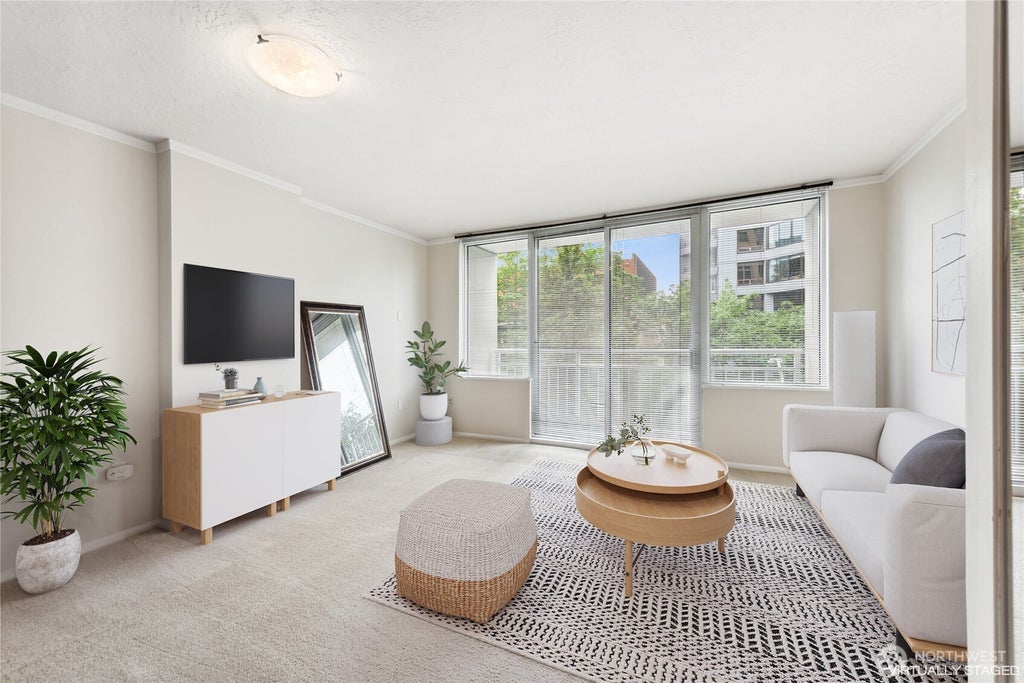 Open and bright Studio nestled on the 4th flr with west-facing city views! This well-appointed and uber-efficient floorplan lives large featuring a fully equipped kitchen with breakfast bar, open living area, spacious bathroom, private covered balcony, and tons of storage throughout. Newly refreshed, additional home highlights include air-conditioning, high-ceilings, amazing natural light, and an in-unit washer/dryer. Seattle Heights is an iconic staple to the Belltown skyline offering residents luxury high-rise amenities including a 24hr concierge, pool/spa, view BBQ terrace, fitness center, clubroom, business center, and more! 1 PRKG/1 STRG included.