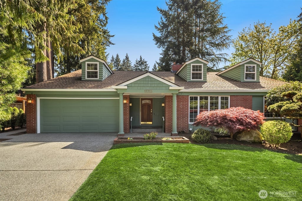 This beautiful home sits in a quiet cul-de-sac in a highly desirable neighborhood. Light and bright, with tons of natural light, this home lives like a rambler, featuring two additional bedrooms and a ¾ bath on the upper level. The open kitchen w/ adjacent breakfast/family room with gas fireplace opens up to a secluded backyard. HUGE main floor primary bedroom with large walk-in closet, 3/4 bath, and one more huge bedroom on the main floor. The den (or 5th bed) opens to the outdoor garden area, which offers a wrap-around deck and blooming trees. Popcorn has been removed, all new paint, and all new carpet and luxury vinyl plank throughout. Private and quiet, with super close access to Totem Lake, 405, schools, parks, and more. Pre-inspected