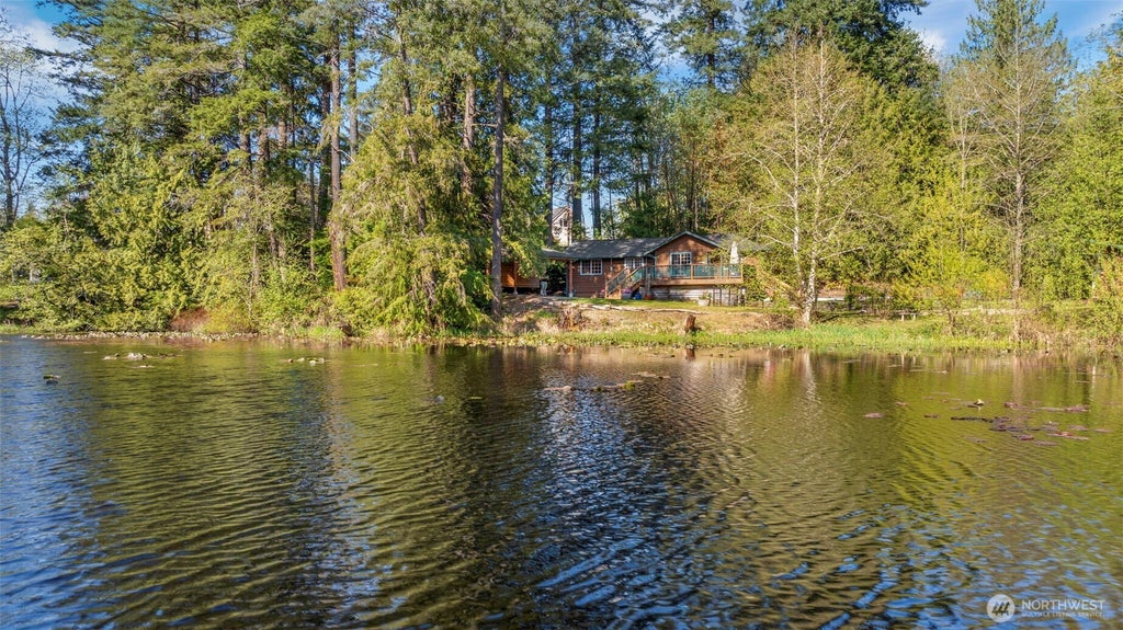 Relax and Restore with peaceful pond views from your west facing sunny acre lot. This sweet 2BR+ office retreat provides all day sunshine and plenty of space for outdoor enjoyment. Beautifully updated kitchen features granite counters, soft close cabinetry and newer appliances with gas range. Charming vaulted primary bedroom with spacious modern ensuite, custom shower and walk-in closet. Free standing gas stove plus mini-splits to keep you perfectly comfortable year around. Unfinished basement has huge storage area & workshop. Oversize composite deck with view opens to huge lawn space, raised garden beds, fenced yard & storage shed. Impressive carport for toys + plenty of parking. Gorgeous private rural feel yet minutes to everything!