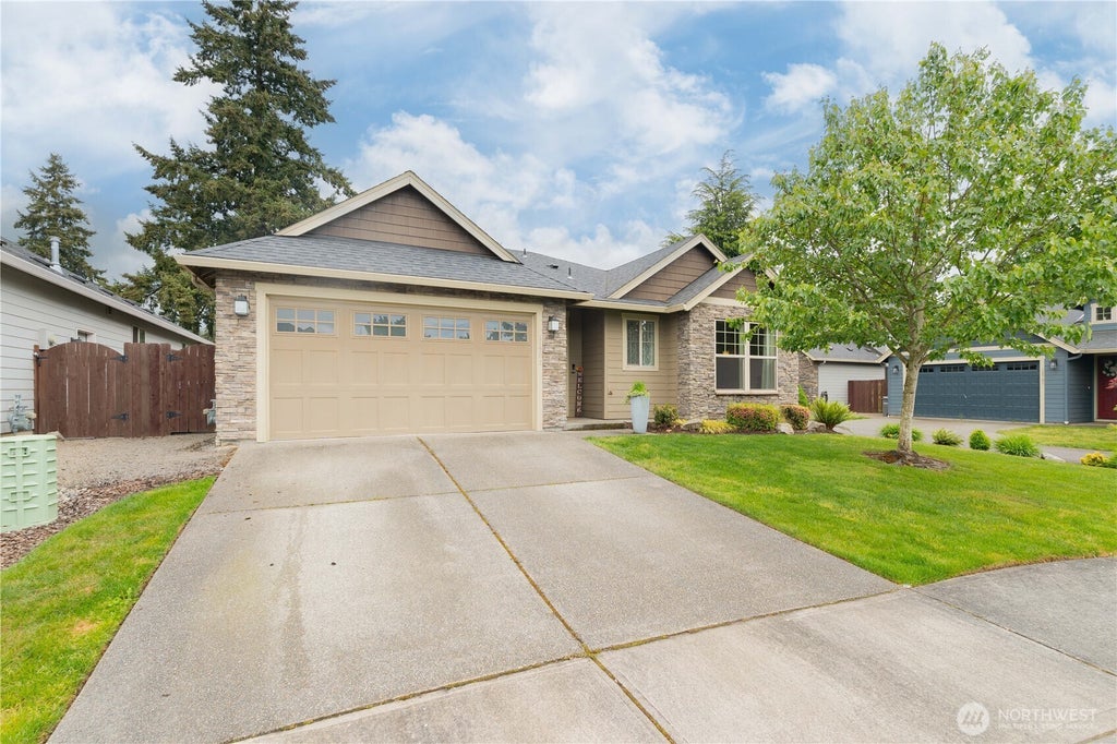 Nestled amongst a small, peaceful neighborhood, this charming single level home offers an escape from the bustle of everyday life. With 3 inviting bedrooms & 2 thoughtfully designed baths, comfort & ease blend naturally throughout the space. The soft glow of natural light that filters in throughout the day complements the engineered hardwood floors that flow throughout the hallways, kitchen, living, & dining areas. The kitchen is both stylish & functional featuring quartz countertops, an island, & a gas stove while the living room offers a cozy gas fireplace. Step outside to a covered patio & generously sized backyard for a sense of privacy & seclusion. Here, you can enjoy your private retreat as you listen to the chorus of birds chirping.