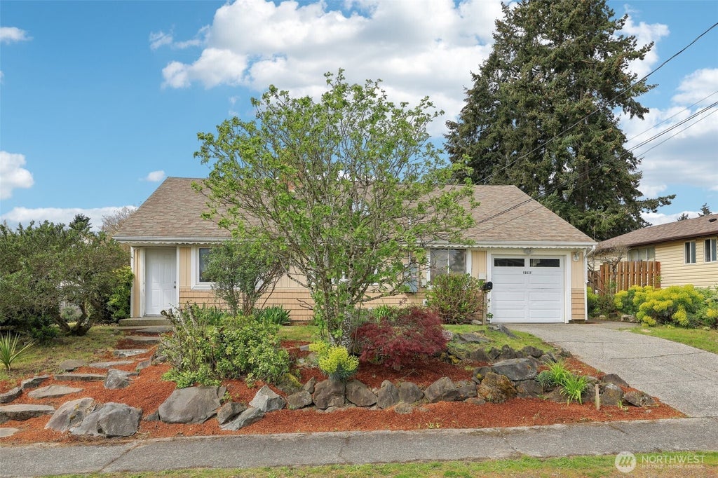Charming & versatile Lovell home with a rental/Airbnb/MIL unit, perfect for extended living, guests, or rental income! The main house features a spacious layout with a bedroom on the main floor and two more upstairs. Vaulted ceilings and skylights fill the kitchen with natural light, while hardwood floors and a cozy gas fireplace create an inviting living space. The back unit offers great separation and privacy, complete with its own full kitchen, bath, open-concept living area, cathedral ceiling, skylights, & a loft-style bedroom upstairs. Step outside to a Lg fenced yard with fruit trees & garden space. Slab w/ power/water/sewer. DADU? Lg garage/workspace too. Conveniently located near shopping, transit, freeways, parks and the airport.