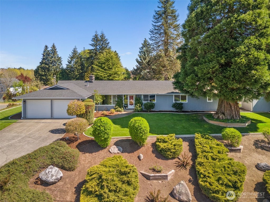 Incredible opportunity to own a gorgeous remodeled rambler on a double lot only 5 mins to West Oly. A giant and stunning Sequoia tree greets you as you approach this meticulously maintained inside & out home! Gated & paved road leads to huge heated shop w/ parking for 4 cars! Oversized primary bed w/ spacious luxury 5 piece en-suite featuring quartz counters, a beautiful soaking tub, shower w/ frameless glass & large walk-in closet. Enjoy the coffee/wet bar in the family room featuring built-in shelves. Newer windows, roof + gutters! Lawn is like a putting green w/ curbs + a 10 zone irrigation system. Sun drenched patio for all your outdoor entertaining, + jacuzzi for relaxing in the fully fenced & private backyard.