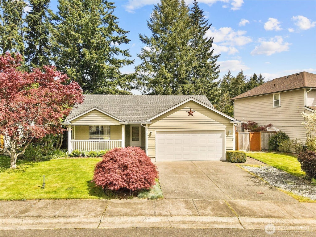 Welcome to the charming Sunrise community in Puyallup! Enjoy parks, playgrounds, walking paths, and a community center just steps away. This delightful rambler backs to a large park—no rear neighbors! Relax on the front porch or unwind on the backyard patio in your fully fenced, landscaped yard. Inside, you’ll find a bright, cheerful space with a large kitchen island, gas stove, skylights, ceiling fans, and a cozy gas fireplace. The spacious primary suite offers privacy, a walk-in closet, and a private bath. All appliances are included. Don’t miss your chance—welcome home!