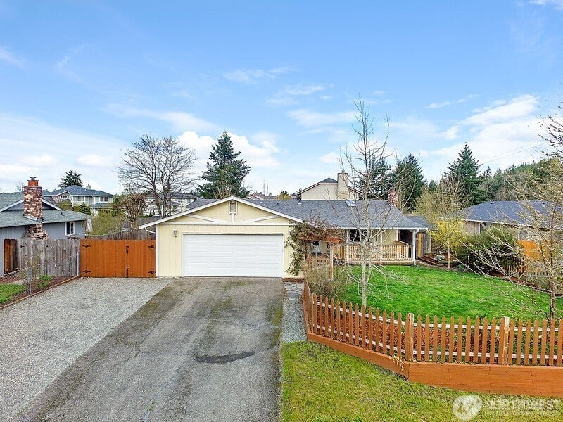 Welcome to this charming 3-bedroom, 1.5-bath rambler offering 1,012 sq ft of comfortable living. The fully fenced yard includes two sheds—one with power, ideal for a workshop or studio, and another perfect for storing firewood for the cozy wood-burning fireplace. The garage provides extra storage and flexibility. Inside, you'll find a thoughtful layout, updated kitchen, dining nook, and a spacious living room filled with natural light. The primary bedroom features a generous walk-in closet. Enjoy RV parking, a large backyard for gatherings, and a covered front porch—perfect for sipping your morning coffee.