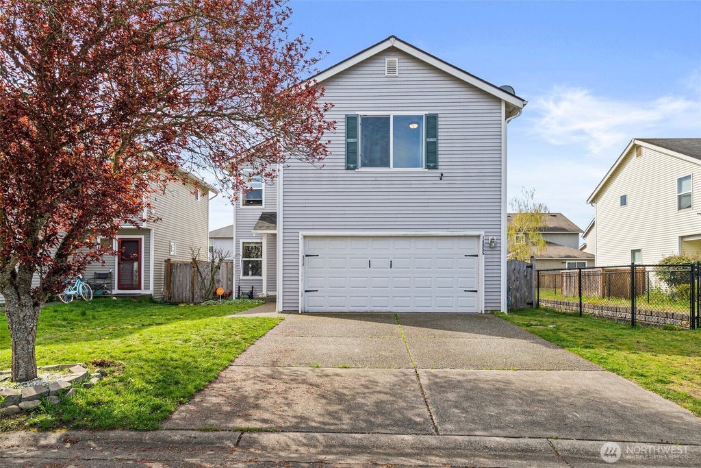 Discover this spacious Yelm gem offering 2,165 square foot of comfortable living with 3 bedrooms, a large loft, and 2.5 baths. The open concept main floor features a cozy fireplace, laminate floors, flowing seamlessly into the spacious kitchen, complete with a central island, abundant counter space, ample storage, stainless steel appliances, and an abundance of natural light. The generously sized primary suite bath with dual vanities and a relaxing soaking tub. Outside, you'll enjoy the back deck and fully fenced yard perfect for entertaining or unwinding. The roof is just 6 years old for peace of mind. Located in a welcoming community with multiple parks and an ideal location for commuting to Lacey, Olympia, and JBLM.