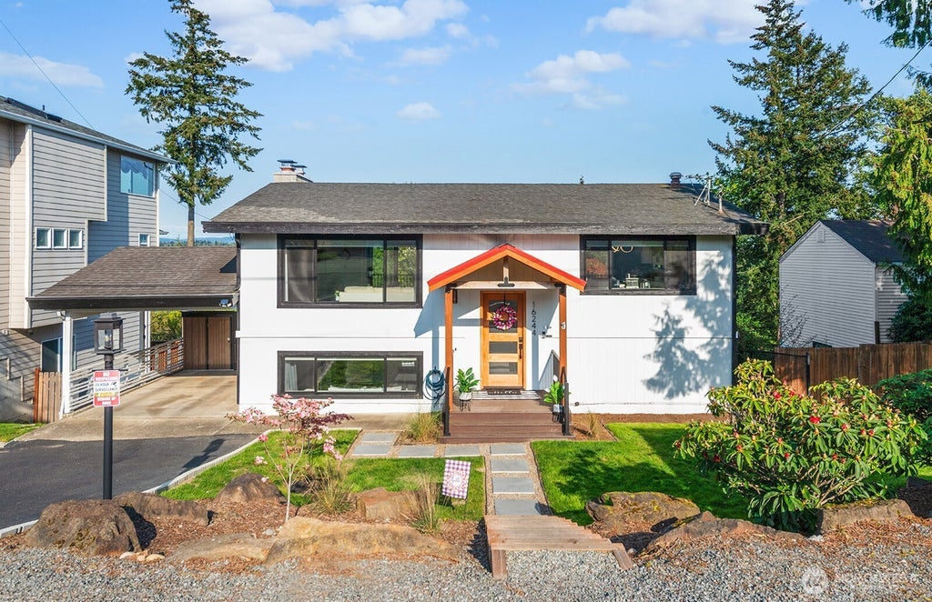 Immaculately maintained home in the quiet neighborhood of Gregory Heights. The 2023 remodel was just the start for this upgraded gem. Newly resurfaced blacktop w/stone pavers & custom landscaping creates a stunning curb appeal. But the sellers didn't stop there! The Gas line was connected w/a new range & double electric ovens, which brought this chef’s kitchen to the next level. Enjoy Puget Sound views right from your dining room. Soak up summer days from your expansive top deck dining al la fresca. New electric panel, reverse Osmosis filter water system in kitchen, new AC & heating system w/thermostat, & so much MORE! Large lot located perfectly in no-flight path, minutes to Trader Joe's, PCC, shops, F Line, freeway access, & the airport.