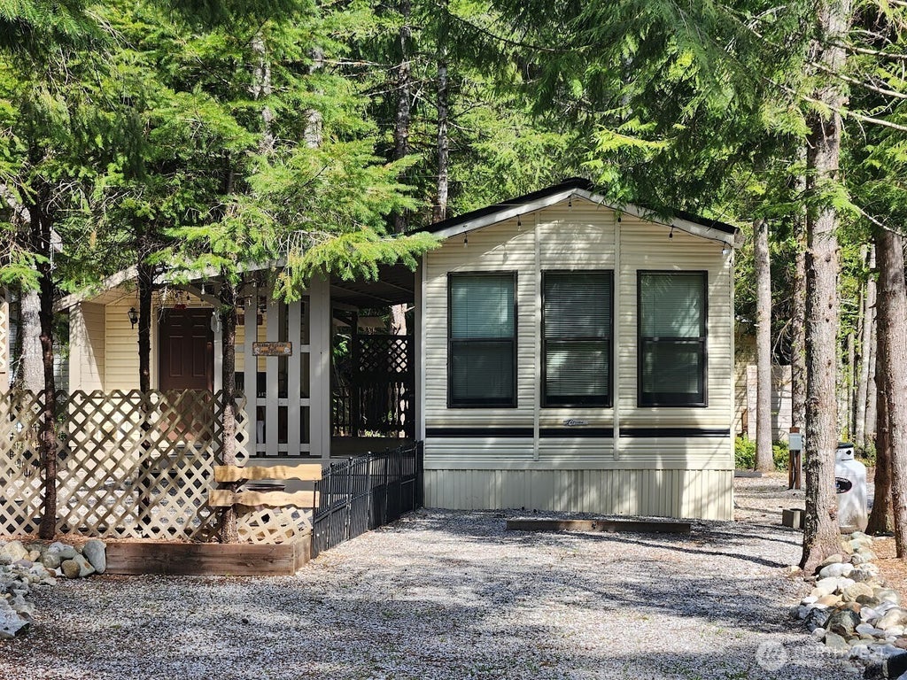 Looking for a turn-key retreat? Look no further! Weekend base-camp for skiing, hiking, and countless recreational pursuits in the beautiful foothills of Mt. Baker? Check. Longer vacation to relax and enjoy the two pools, multiple playgrounds, disc golf course or library on the beautifully landscaped grounds? Check. Mid-week getaway to work on that novel, level-up your napping skills, and continue your search for the ultimate 'campfire beverage'? Check! Spend QUALITY time under the large covered porch or around the fire pit; sleep in the large bedroom, while the insulated 'shed' welcomes guests with comfort. TONS of storage inside, wood & tool shed outside, fully-fenced. Electrical & plumbing updates throughout the well-maintained trailer.