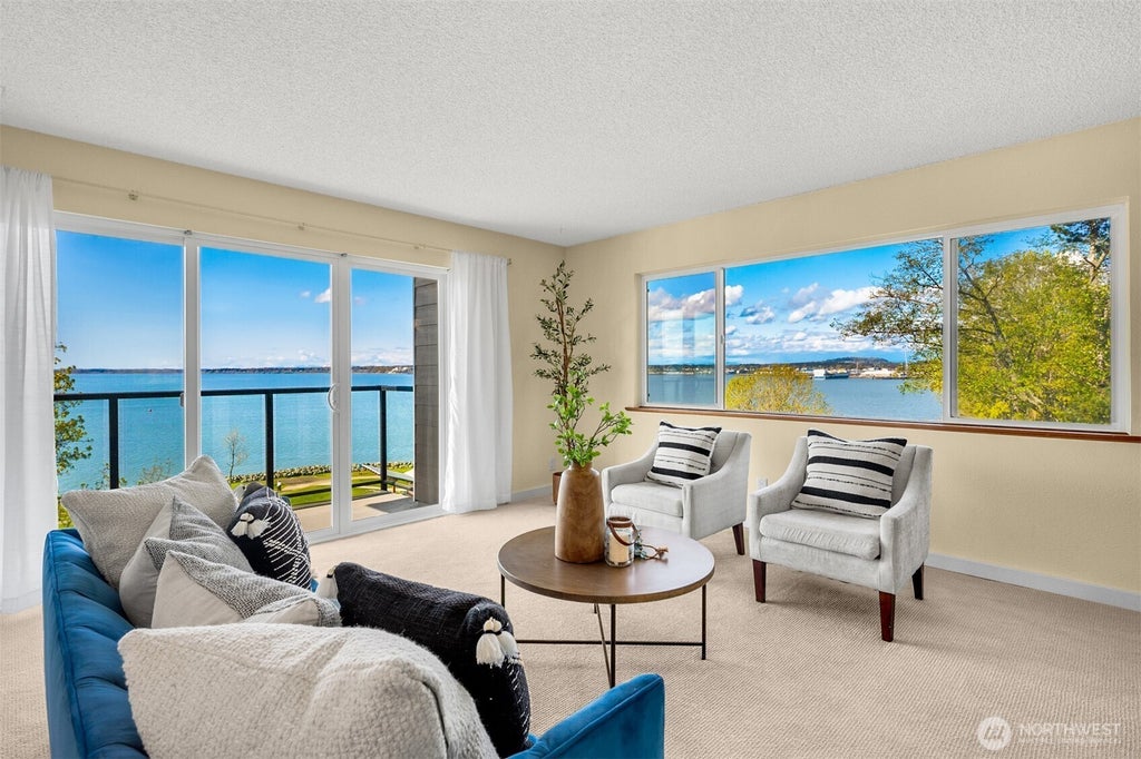 Soak in sweeping views of Bellingham Bay from this light-filled, end-unit condo at Spinnaker Reach. With windows on three sides, this 2-bedroom unit lives big and bright, offering stunning sunsets and a front-row seat to the waterfront. The open living and dining space flows effortlessly onto a private balcony/deck—perfect for morning coffee or evening wine. Enjoy access to great community amenities, including an outdoor pool and a game/rec room. Just steps from Boulevard Park, Taylor Dock, and all the charm of Fairhaven, this is Bellingham living at its best. Covered parking, elevator, recently remodeled bathroom and new carpet round out the package. A rare and wonderful opportunity!