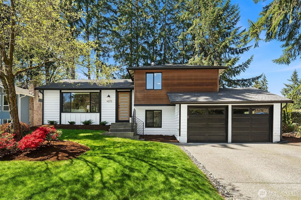 {{Bright, stylish, and move-in ready in Kingsgate}}! This light-filled, flexible home on a cul-de-sac offers an open layout with a spacious kitchen and oversized island, versatile dining areas, and seamless flow to a large entertainment-sized deck and huge fenced backyard. Upstairs features a bathroom, three bedrooms, and includes a serene primary with an ensuite bathroom. The lower level provides a bonus/rec room, flexible office/bedroom, powder room, and laundry room. Enjoy community amenities including a pool, playground, tennis court, and easy access to the Tolt Trail, which leads to the Woodinville Wine District. Walkable to schools. Two-car garage and ample parking. Make it home today!