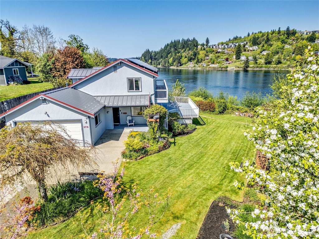 Rare piece of Bremerton waterfront! Enjoy 81' of high-bank waterfront, with sweeping views of the Port of Washington Narrows & Puget Sound. This well-maintained 4-bed, 3.5-bath home offers 2015 sqft of timeless charm. Expansive deck has motorized awnings to add shade & comfort, creating a gorgeous entertaining area, large lot w/mature landscaping. Spacious primary suite features ensuite bath & incredible views from a private, second deck. Home is wired for generator-which stays. Solar panels provide ample electricity resulting in an average of $8/month power bill even with the Electric car charger! 2-car attached garage, plus plenty of parking for RVs or boats. NO HOA. Minutes to downtown Bremerton, PSNS, & Bremerton ferry for easy commute.