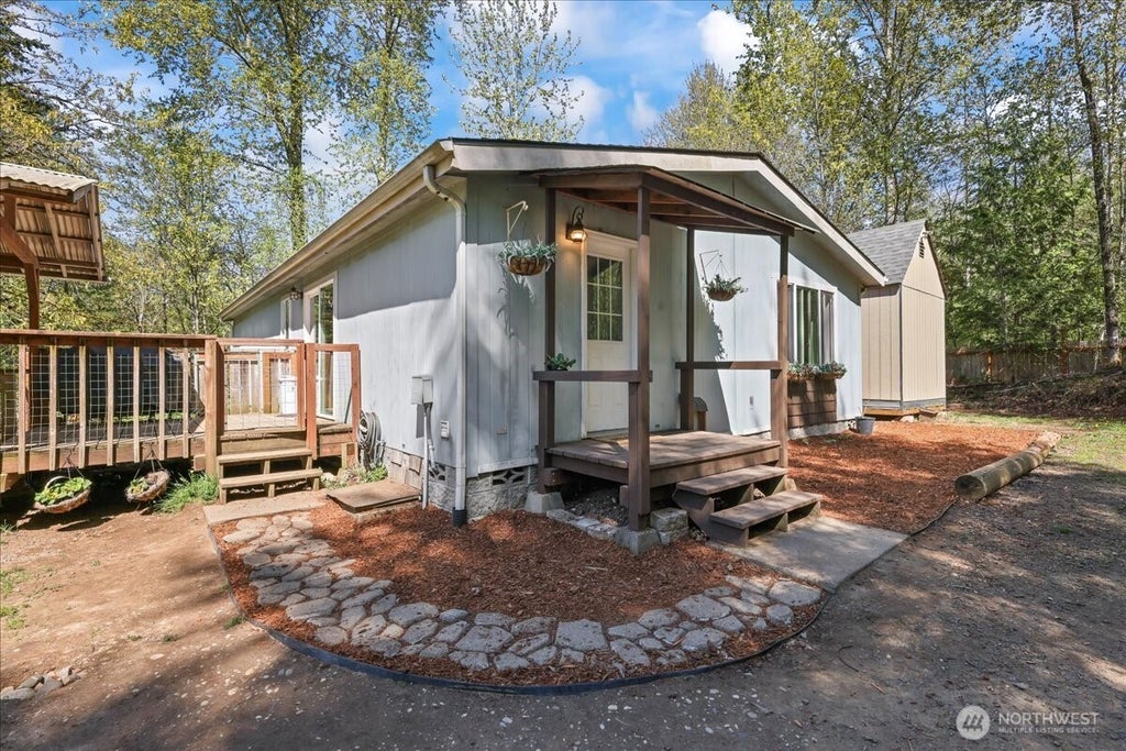 Discover Your Private Northwest Retreat! Nestled on over 1.6 acres of lush, wooded land, this charming 3 bed, 2 bath single-level home blends nature and comfort perfectly. The fully fenced yard boasts a cozy fire pit, fruit trees, and a babbling stream that leads to a short trail through your private woods. Inside, enjoy a spacious open-concept kitchen and a large back deck—ideal for entertaining or soaking in the serene surroundings. Just a short drive from schools and shopping, this secluded oasis offers peace and privacy. Don’t miss this rare chance to own your own tranquil paradise!