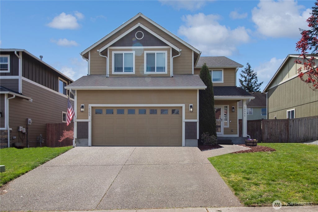 Welcome home to this beautifully maintained 4-bedroom, 2.5-bath home in Yelm’s Cherry Meadows neighborhood! This incredible home features a stunning open-concept kitchen with granite counters & lots of storage, a spacious living room with cozy fireplace, and a wonderful family room when you walk in! The fenced backyard includes a patio perfect for entertaining, along with a playset & shed! Upstairs, the primary suite is spacious & features a walk-in closet, double sinks, jetted tub, and walk-in shower. The three additional bedrooms upstairs are all bright & spacious as well! The laundry room is also conveniently located upstairs. The heat pump provides heat & A/C! Next to shopping, restaurants & just a short commute to JBLM! Welcome Home!