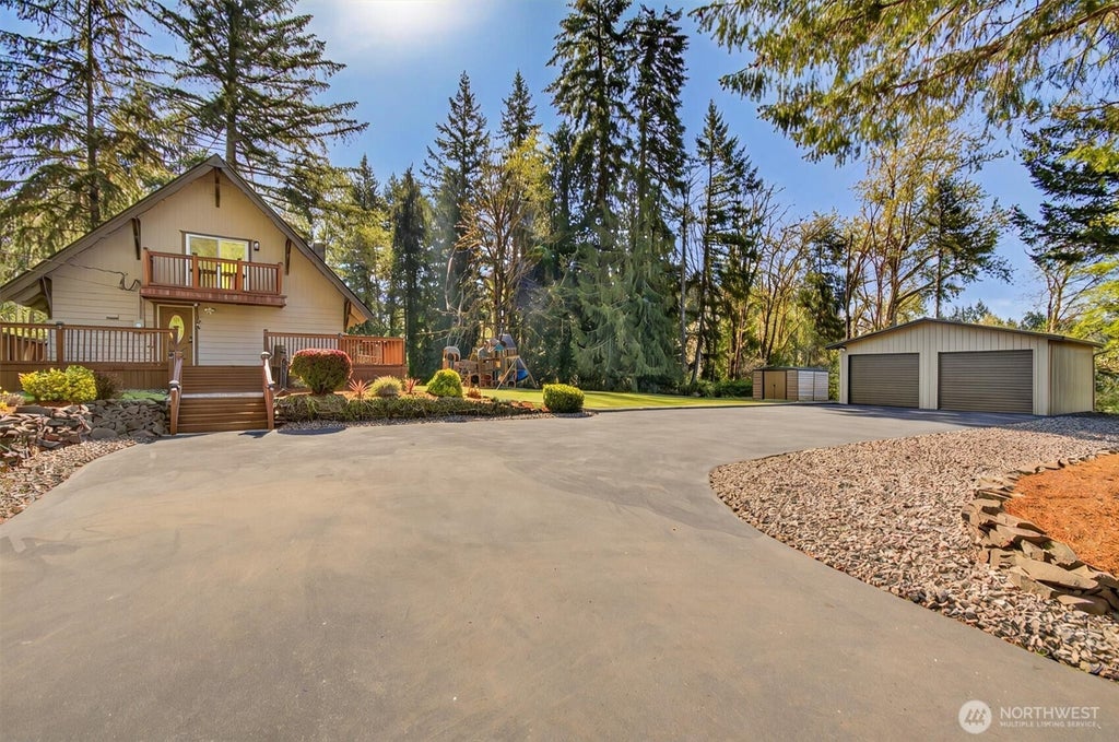 Just 20 minutes from I-5 (Exit 68), this charming chalet sits on an oversized lot, with two additional parcels included, expanding your total acreage to over 1.4 acres. Featuring 3 bedrooms and 1.75 baths, your home is peacefully located near Mayfield Lake and Ike Kinswa State Park. Inside, the remodeled kitchen stands out with rustic alder oak cabinets adjustable track lighting and newer appliances, complemented by open exposed beam ceilings w/h tongue and grove planks. The open primary bedroom adding to the home's roomy feel. Outside, the low-maintenance garden, surrounded by lush evergreens, enhances the tranquil setting. A detached two-car garage completes the property. Potential income from VRBO or Airbnb opportunities. Welcome Home!
