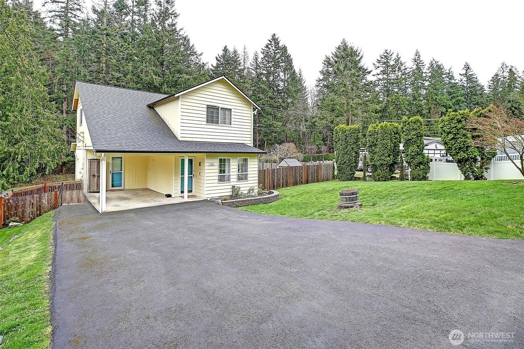 Welcome to this cute Camano Island two story cottage located on the sunny west side of the island. This cozy home has been nicely maintained inside and out by the seller and is ready for some lucky new owners. Home is a nice comfortable 1452 square feet with 2 bedrooms, a den/office, family room and separate dining room or flex room, custom kitchen with white painted cabinets, quartz counters and stainless appliances, convenient utility area, single car carport, covered back deck and fully fenced back yard. Plenty of storage and potential with this handy storage/mechanical room under the house with full headroom and concrete slab, great spot for the hot water tank, water filtration system, electrical panel, freezer, yard tools etc...