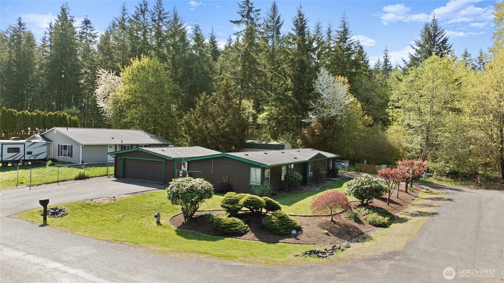 Corner Lot in Prairie Ridge surrounded by privacy at the end of the development with only one neighbor! Beautiful landscaping, fully fenced yard for pets and privacy, large covered back patio and two driveways for more parking. LARGE two car detached garage with bonus storage room and an additional extra-large storage shed 10'X28' w/loft! One level living with 3 bedrooms, 2 bathrooms, kitchen w/eating corner, full wet bar for entertaining, built-ins, vaulted ceiling with beams and open concept living. All new flooring, new water heater, new lighting, new windows and 1670 sq ft inside! You will love the location, privacy, plenty of space inside for entertaining, and tons of outdoor storage for all your toys.