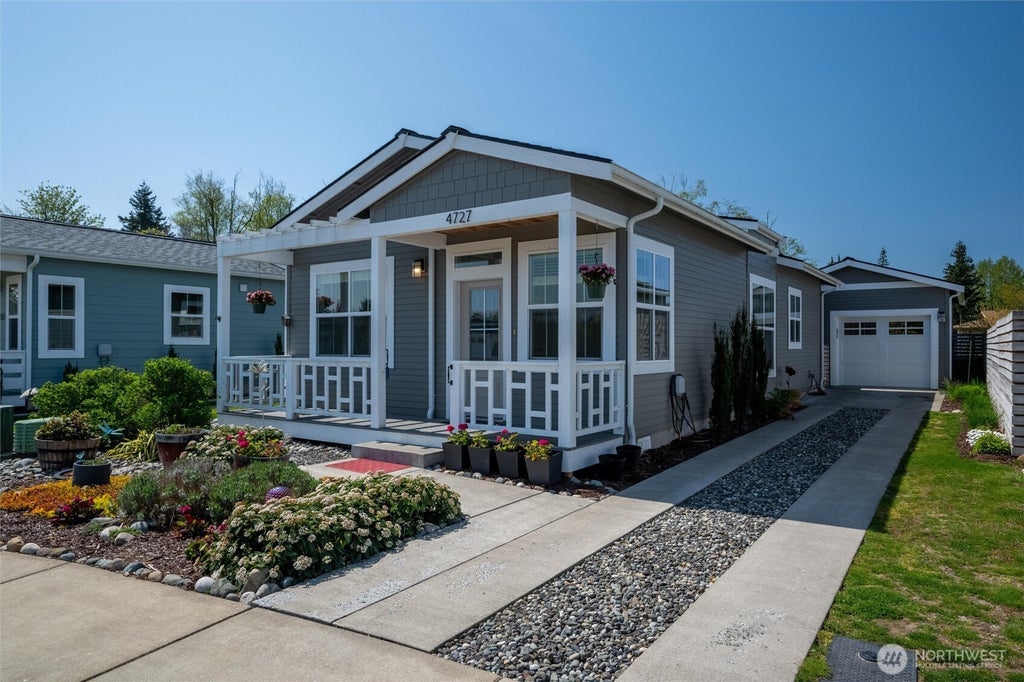 Welcome to this charming, energy-efficient 2 bed, 2 bath (1 full bath w/ deep soaking tub +1 3/4 bath w/ easy walk-in shower) cottage-style home in the heart of Cordata! Nestled on a premium lot right across from a park, you’ll enjoy beautiful views of Mt. Baker & easy access to walking trails. Inside, you'll find nearly-new LG appliances, including a 1.5-year-old fridge & dishwasher, plus a brand-new electric stove. Custom wood blinds add a cozy touch throughout, with blackout blinds in the primary bedroom opening to a private deck. Step outside to an oversized Trex deck, perfect for sunny days, a fully fenced yard, and raised organic garden beds. The garage has extra insulation, outfitted w/ extra outlets—ideal for year-round hobbies!