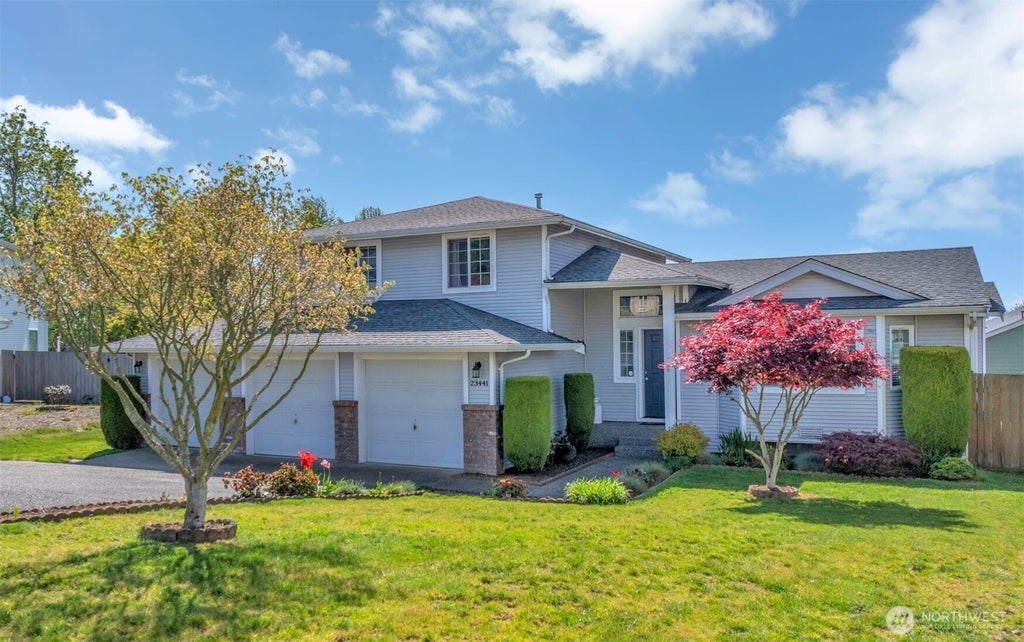 Must See! Tucked in a cul-de-sac, this tri-level home lives large! Main level dazzles w/ engineered HW flrs, vaulted ceilings, & natural light that unites living & dining areas w/chef-ready kitchen featuring quartz counters, white shaker cabs, SS appliances, & pull-out storage. Upstairs, the primary suite enjoys Sound & Mtn views from its private balcony, plus a full bath & walk-in closet. Downstairs offers a versatile family rm anchored by a cozy gas FP w/access to 3 car gar, ldry rm & yard. A sprawling Trex deck & pergola overlook the large & level fenced backyard, ideal for gatherings or quiet morning coffee. Pre-inspected w/ newer roof, furnace & A/C. Mins to the Des Moines Marina, freeways, parks, Highline College, & the new light rail