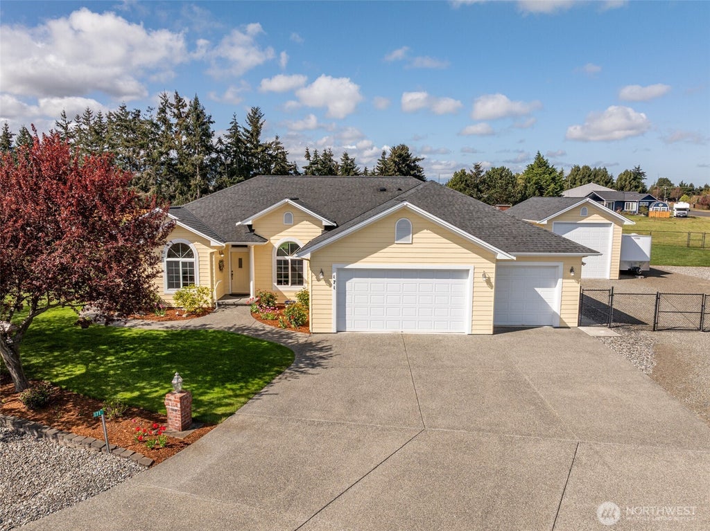 Pride of ownership radiates from this IMMACULATE single-level home on 1 serene acre just outside Sequim City limits. Enjoy rural charm with city convenience! Featuring 2,140 SF, 3 Beds + Den, 2.5 Baths of open concept living with partial Olympic Mt views: Great Room with fireplace, formal Dining, casual Nook, spacious kitchen with pantry & massive breakfast bar plus a 401 SF partially covered deck for seamless indoor/outdoor living. Primary Suite with deck access, dual walk-in closets & 5-piece bath; private from 2 additional Bedrooms, Bath & Den. 828 SF 3-car garage & 480 SF detached shop or RV storage. Fully fenced yard with garden beds, fruit trees & lush grounds. Close to Pt Williams Beach, Olympic Discovery Trail & all town amenities.