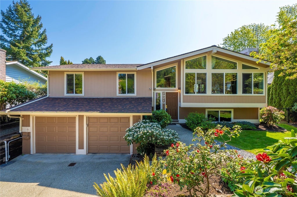Come enjoy spectacular sunrise mornings & end-of-day sunsets that reflect off the panoramic skyline across the Auburn valley to the Cascade Mountain range. This 2270sf immaculately maintained 1980-built split-level home has just been fully refreshed! The upper level has beautiful vaulted ceilings that encompass the fireside living/dining room & updated kitchen w/maple cabinets, granite counters & SS appliances. Also up is the primary suite with 3/4bath, the main full bath & 2 add'l bedrooms. Downstairs is a large family room w/wet bar, a 3/4 bath, laundry room & office. Tucked away quiet cul-de-sac living on a 1/4acre lot, w/ fully-fenced private backyard, raised bed gardens, & full-length deck w/stairs to the backyard. Close to everything!