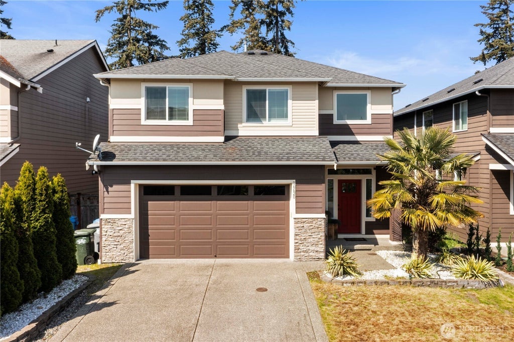 Welcome to 2,515 sq ft of stylish comfort! This well-designed home features an open-concept family room with a cozy gas fireplace, flowing into a gourmet kitchen with a center island, slab granite, full tile backsplash, and shaker cabinetry—perfect for entertaining. A main-level den offers great flex space for work or study. Upstairs are 4 spacious bedrooms, including a luxurious primary suite with a spa-like 5-piece bath and walk-in closet. Enjoy year-round outdoor living on the covered deck with its own fireplace. Designer flooring, a deep 2-car garage, and access to community playgrounds make this move-in ready home a must-see!