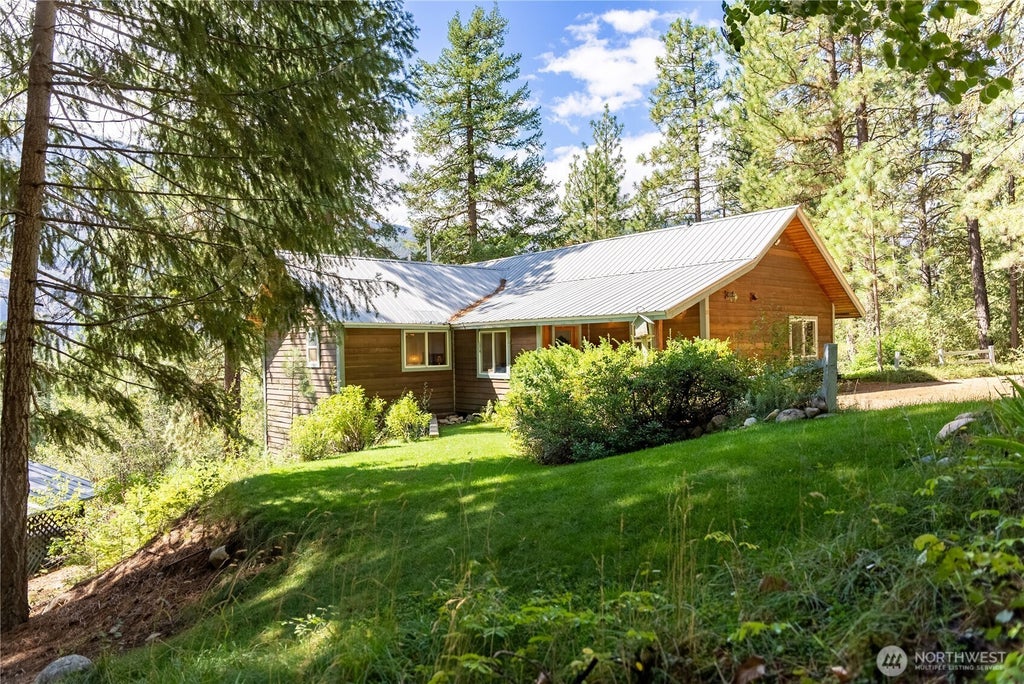 Experience the perfect blend of adventure & tranquility in this stunning mountain home, ideally situated across from Lunachik trailhead on Goat Creek Road! Whether you love walking, mountain biking, or skiing, you can access the Methow River & its scenic trails right from your doorstep. 3 combined lots for added privacy, this spacious home boasts impressive views of Sandy Butte & Mount Gardner through its expansive wall of windows & inviting deck. Warm wood floors & ceiling accents create a cozy, sunlit ambiance. 2 bedrms/2 bathrms plus expansive Primary w walk-in closet & ensuite bathroom. Easy living w charming details throughout. Benefits incl a pool, maintained roads, water service, & snow removal. Ready for your mountain life dream!