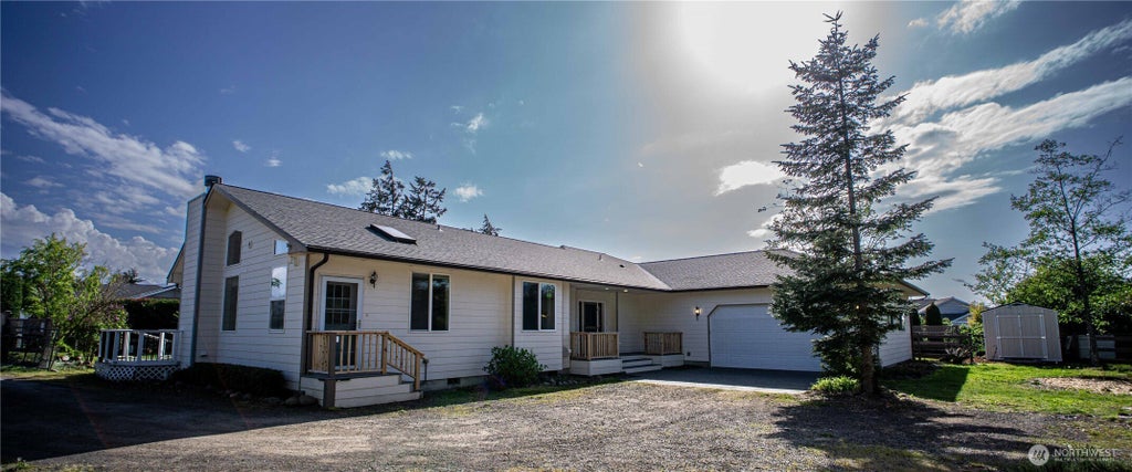 Conveniently located near the Sunny Farms Country Store just west of Sequim, this charming 1 acre property showcases a nearly 2400 sqft 3 bed 2.5 bath home, currently set up for at-home business or multigenerational living. Highlights include two great rooms, additional kitchenette, new roof, oversized 2 car garage, adorable workshop with loft, southern exposure & mountain views on the composite deck, private yard, established garden spaces, two storage sheds, & loads more! Then jump on the Olympic Discovery Trail right around the corner to explore the Dungeness River Center, or take a short ride to the downtown Farmers Market, dining, shopping, local golf courses, beaches, & endless outdoor recreation on the stunning Olympic Peninsula.