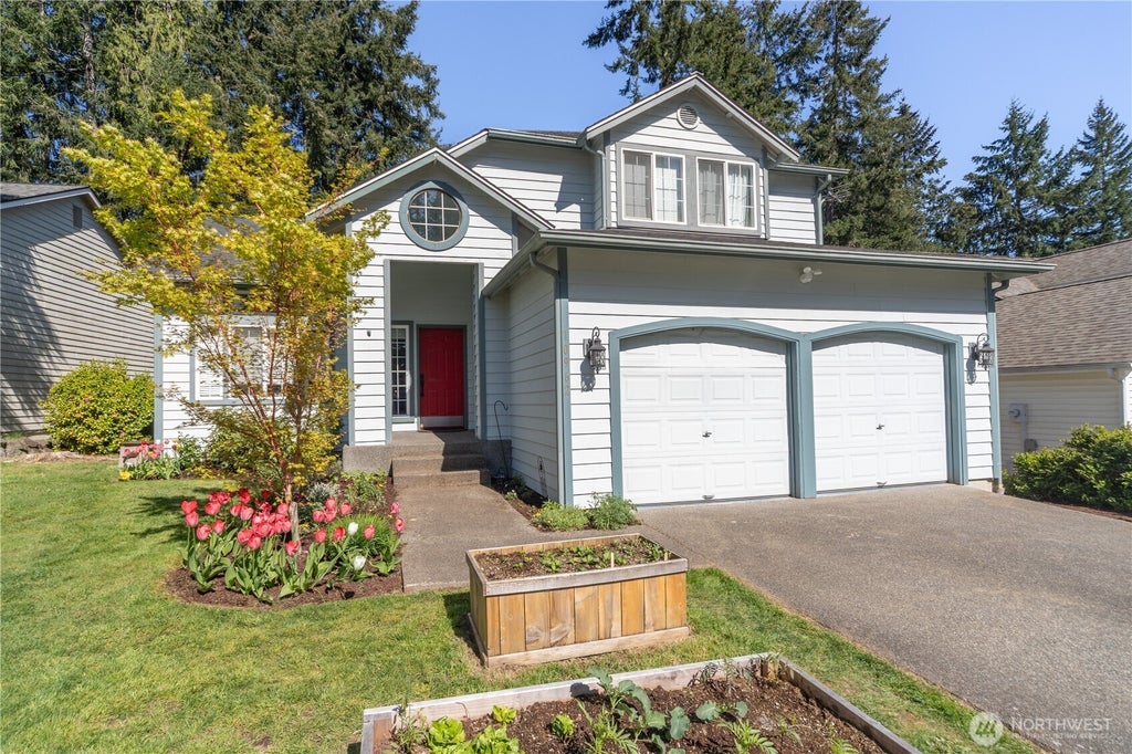 Enjoy peaceful surroundings with partial mountain views and mature trees. The bright entry opens to vaulted ceilings and hardwood floors. The kitchen, with stainless appliances and a 4-seat bar, overlooks the living area—perfect for entertaining or gathering. A separate family room offers extra space to spread out. Step onto the large back deck, ideal for BBQs or relaxing while overlooking the fenced yard with garden boxes and play area. Plenty of parking with a two-car garage, long driveway, and RV space. Upstairs features three bedrooms, including a primary suite with double vanity. Located in the desirable Ridgetop, near plenty of shopping and within CK school district! This gorgeous home is a gem you will want to come see.