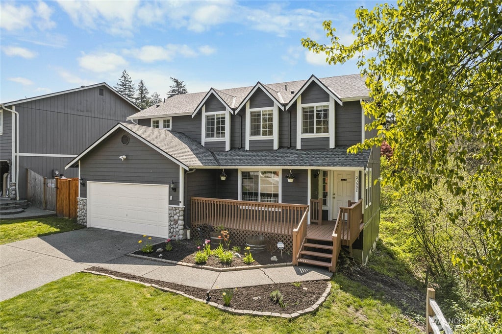4-bed, 2.5-bath home on a corner lot adjacent to a lush greenbelt. Features a cozy dining nook, open-concept layout, and spacious yard with a new composite deck. New hot water tank, furnace, and fence. Move in ready and all appliances stay! Located in the peaceful Garden Oaks community. Amenities include a playground, walking distance to Bethel High School, and an easy commute to JBLM. A perfect balance of comfort, style, and location.