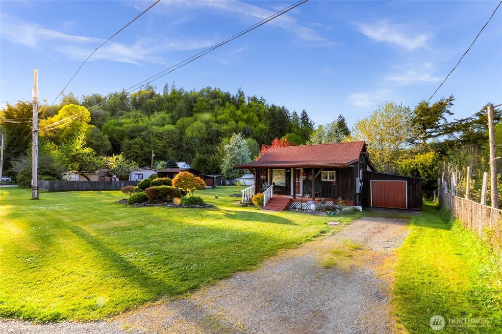 Perfect starter, downsizer, fishing cabin, or Airbnb! Adorable 1 bed/1 bath cottage with lots of recent upgrades. In 2023, this home got a new heat pump, new insulation, and a new electrical panel. Enjoy warmth in the winter between the cozy propane fireplace and heat pump, and the luxury of A/C in the summer. Subdivision potential (buyer verify): Triple sized lot w/flat yard, cherry tree and garden space. Loads of outdoor spaces, including a detached building with/356 sq ft bonus room (office, hobbies, or future ADU?) and 2 sheds. Attached garage/shop also has an electrical hookup for an RV. Close to the historic town of Concrete and Highway 20 on a low-traffic street with mountain views. Your cozy getaway awaits!